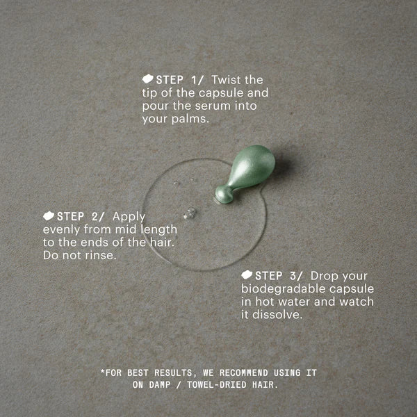 Clinical studies showed a 43% reduction in frizz and breakage after only 1 use. Biodegradable, Cruelty-Free Hair Capsules.