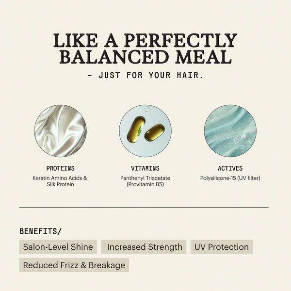 Daily hair serum with keratin amino acids to tame frizz, strengthen hair, and increase shine.